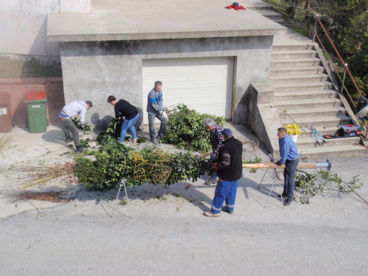Zgodaj zjutraj se je ekipa odpravila po župniji in zbirala zelenje za presmec.